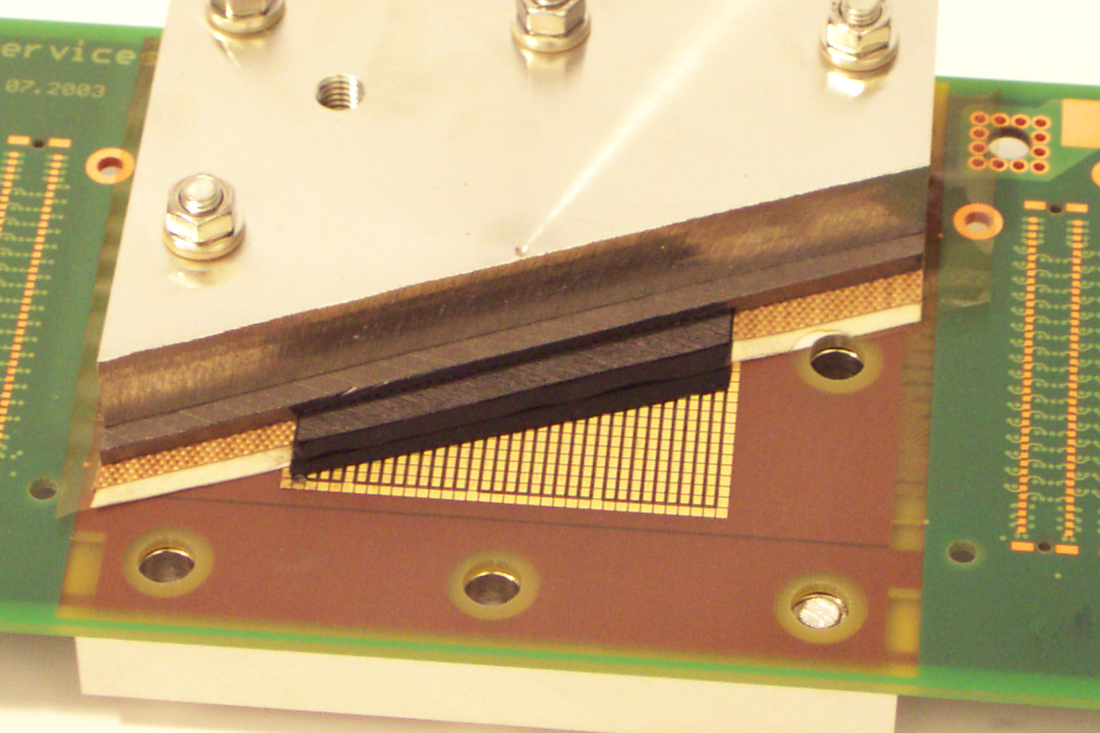 The device of type current scan high res, shown befor has a resolution of 32 x 36 measurement cells and an active area of 25cm². The picture below shows a sectional view of the setup.
