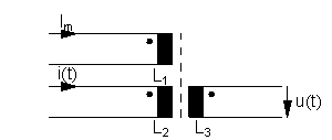 The permeability of a magnetic material is dependend on the magnetization and the temperature. The current Im, which has to be measured, flows through the coil L1 and causes a magnetization of the magnetic material (dashed line). An alternating current i(t), feed into L2, induces a voltage u(t) into the coil L3. This voltage depends upon the permeability of the magnetic material (dashed line). So it depends upon the current Im.
